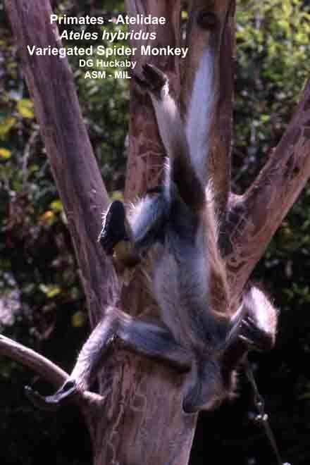Adult hanging only by prehensile tail. Also as Brown Spider Monkey.