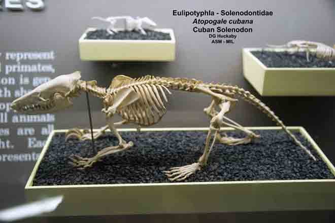 Left lateral view of skeleton. Formerly Soricomorpha. Formerly Solenodon cubanus.
