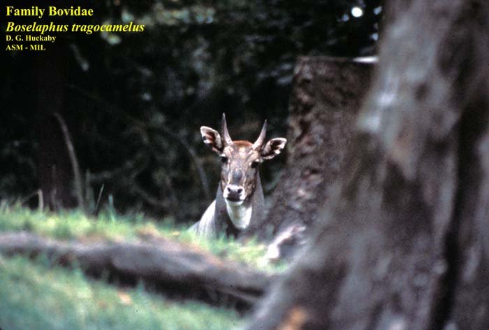 Front view of head, male. Also as Blue Bull|Bluebuck|White-footed Antelope.
