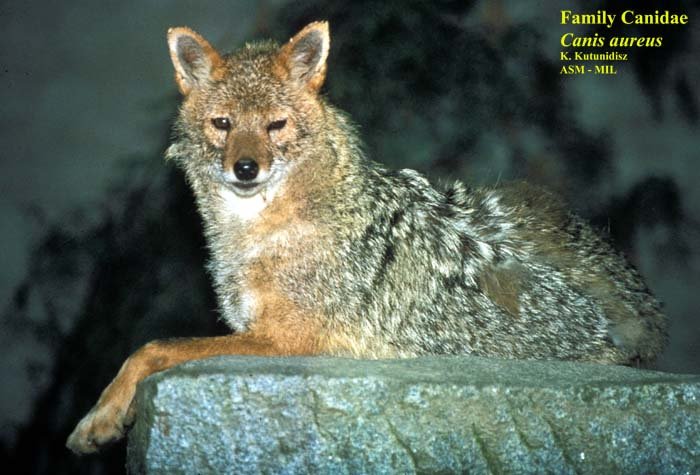 Side view of jackal resting. Probably Canis aureus syriacus.