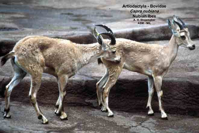 Side view of two one-year-old ibexes. Also as Middle Eastern Ibex.