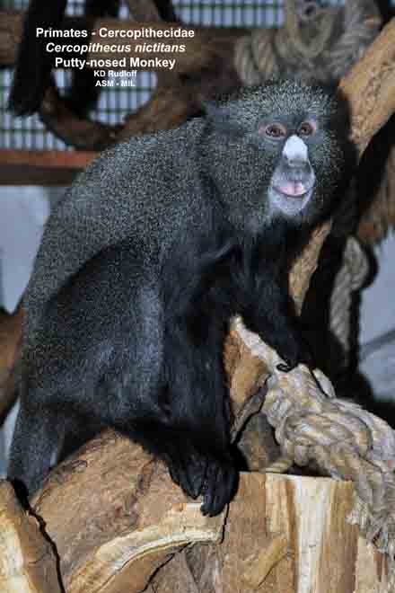 Cercopithecus nictitans nictitans, Eastern Putty-nosed Monkey. Also as Greater Spot-nosed Monkey|Greater Spot-nosed Guenon|Greater White-nosed Monkey|Putty-nosed Guenon|White-nosed Guenon.