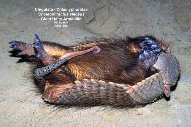 Male, lying on back with penis extruded. Also as Large Hairy Armadillo