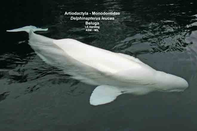 Dorsal view of adult; head, tail, and forelimbs visible. Formerly in order Cetacea.