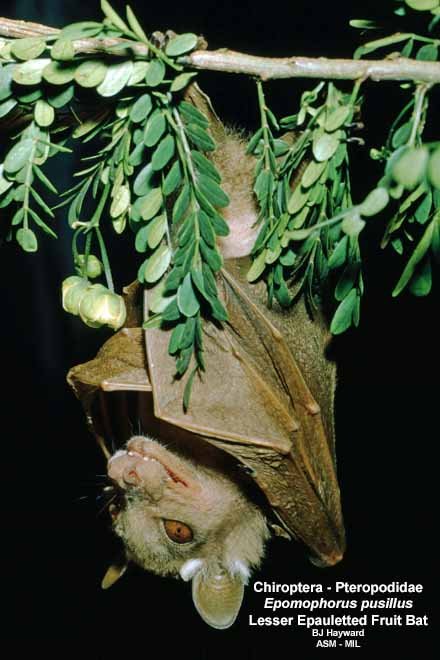 Formerly Micropterus pusillus. Also as Peter's Dwarf Epauletted Fruit Bat|Peters's Lesser Epauletted Fruit Bat.