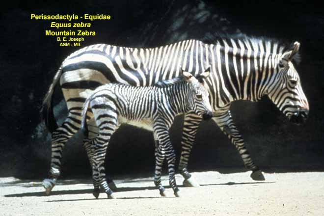 Side view of adults and young. Equus zebra hartmannae. Also as Equus hartmannae, Hartmann's Mountain Zebra.