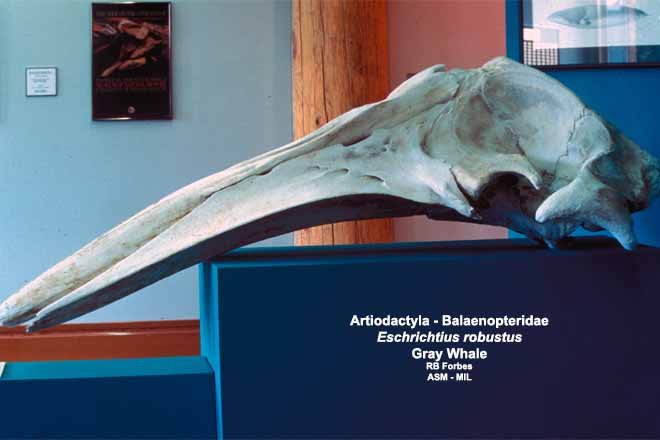 Lateral view of skull (without mandible). Formerly in order Cetacea. Formerly in Eschrichtiidae.