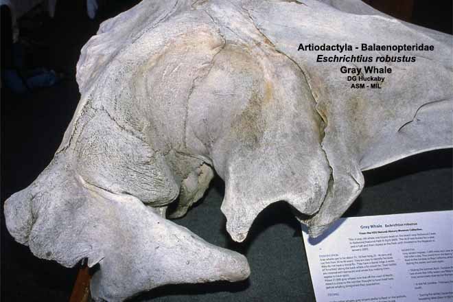 Close up of side of skull. Formerly in order Cetacea. Formerly in Eschrichtiidae.