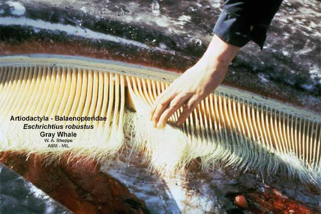 Close-up of baleen, some held aside to show structure and arrangement. Formerly in order Cetacea. Formerly in Eschrichtiidae.