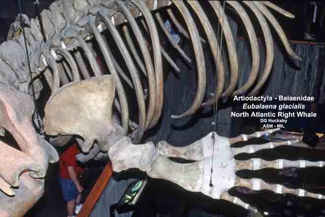 Close up of front limb of mounted skeleton. Formerly in order Cetacea.