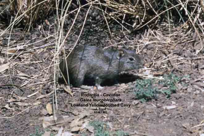 Side view. Formerly as Galea musteloides, Common Yellow-toothed Cavy.