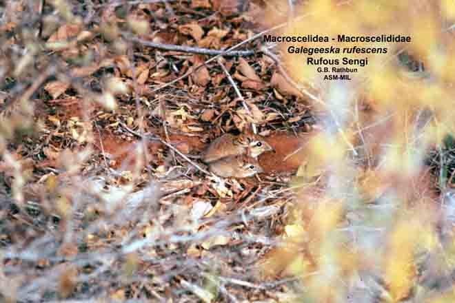 Side view, female with young on resting spot in trail cleared by sengis. Formerly Elephantulus rufescens.