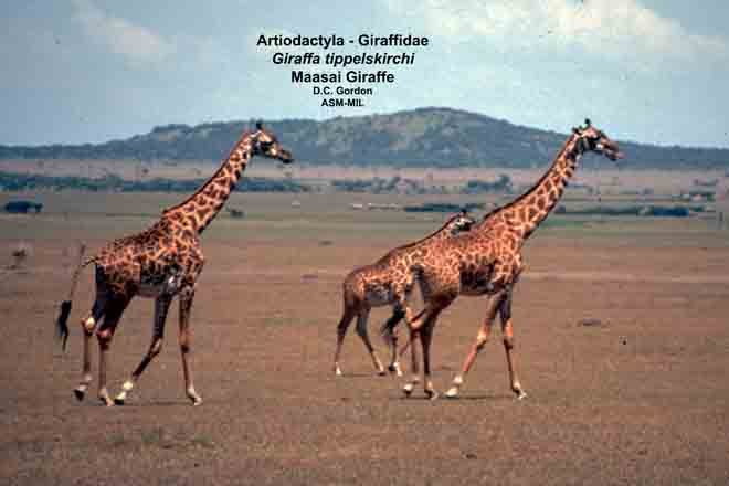 Side view of group. Giraffa tippelskirchi tippelskirchi. Formerly Giraffa camelopardalis tippelskirchi. Also as Kilimanjaro Giraffe.