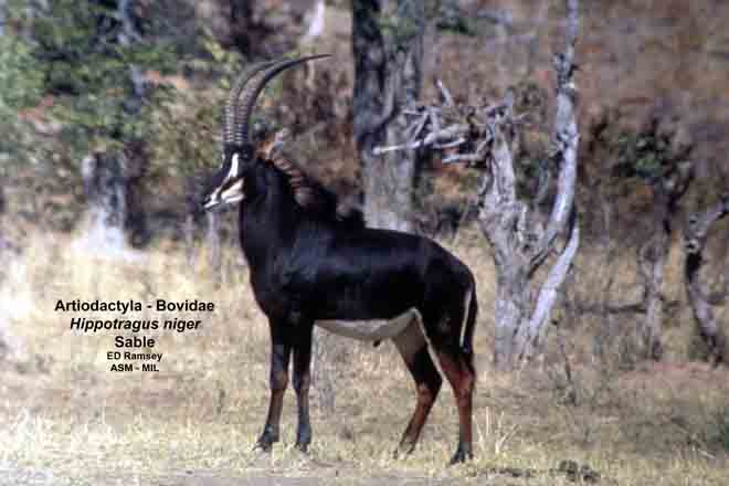Savanna woodland in Africa; giant sable (variani) in C Angola (between Cuanza and Loando Rs.); other subspecies in E Angola, N Botswana, S Dem. Rep. Congo, SE Kenya, Malawi, Mozambique, NE Namibia (Caprivi Strip), NE South Africa, Tanzania, Zambia, and Zimbabwe.