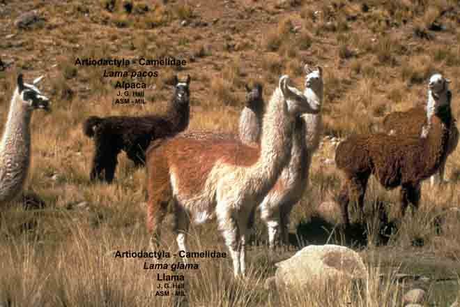 Llama in S Peru, W Bolivia, and NW Argentina. Alpaca from C Peru south to W Bolivia and N Chile.