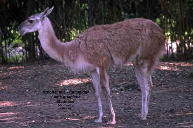 Side view of standing adult. Formerly Lama glama guanicoe.