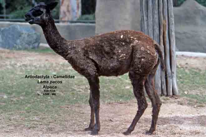 Side view of shorn adult. Complicated hybrid with Lama glama. Also as Vicugna vicugna or Vicugna pacos.