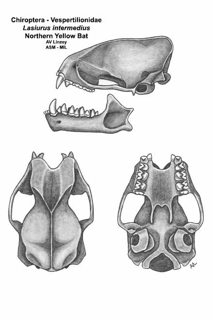 Skull & dentary. University of South Alabama #620 Alabama, Mobile County, Chickasaw. . Formerly Dasypterus intermedius.