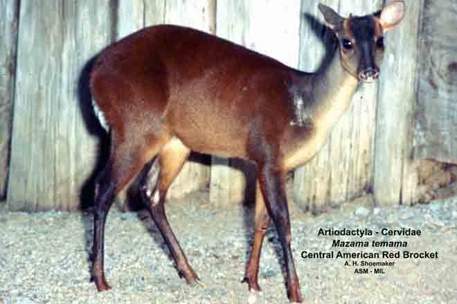 Oblique view of adult female. Formerly Mazama americana temama. Also as Mexican Red Brocket.