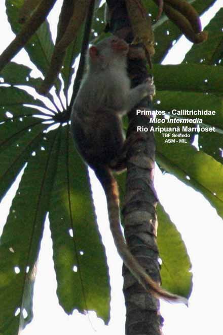 Adult grasping tree trunk,eating Cecropia sp. fruits. Formerly Callithrix intermedia. Also as Aripuanã Marmoset|Hershkovitz's Marmoset. Formerly Cebidae (Callitrichinae).