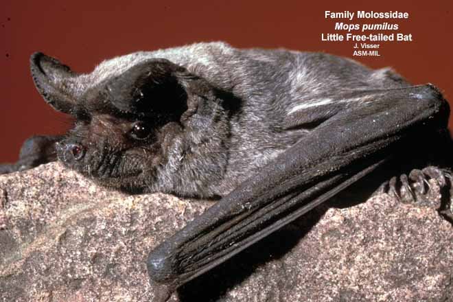 Close-up of head, side view. Formerly Chaerephon pumilus. Also as Lesser Free-tailed Bat|Little Wrinkle-lipped Bat|White-bellied Free-tailed Bat