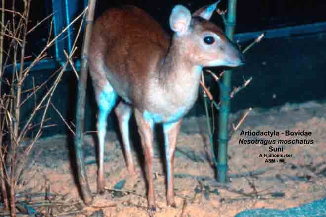 Oblique view of adult female. Nesotragus moschatus zuluensis. Formerly Neotragus moschatus. Formerly Nesotragus zuluensis, Livingston's Suni.