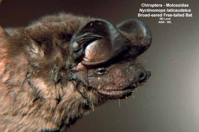 Male, close-up side view of head. Also as Broad-eared Bat|Broad-tailed Bat|Espirito Santo Free-tailed Bat|Geoffroy