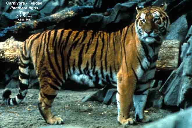 Side view, standing, Panthera tigris altaica, (Siberian tiger)