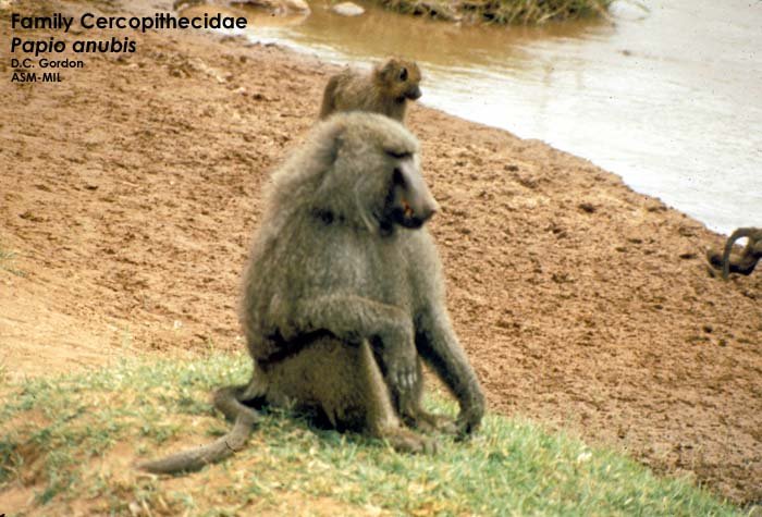 Oblique view of sitting animal. Also as Anubis Baboon.