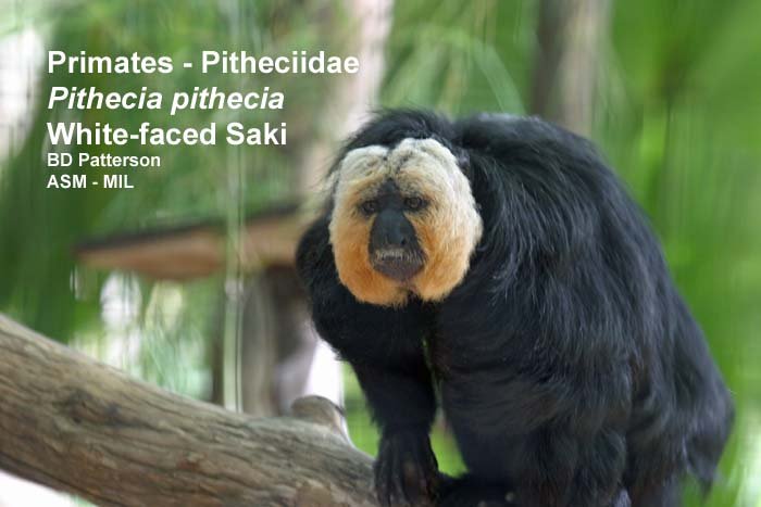 Front view of adult male. May be hybrid. Identified by Laura K. Marsh. Also as Guianan Saki|Pale-headed Saki|Guiana White-faced Saki.