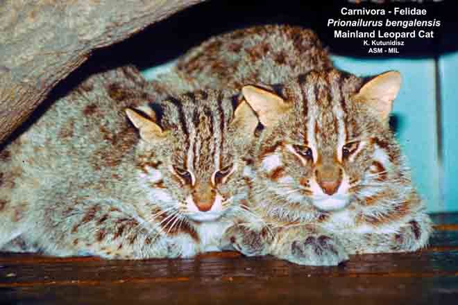 Close-up front view of a pair. Prionailurus bengalensis euptilurus.