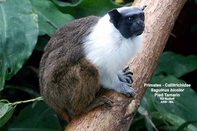 Also as Brazilian Bare-faced Tamarin|Pied Tamarin. Formerly Cebidae (Callitrichinae).