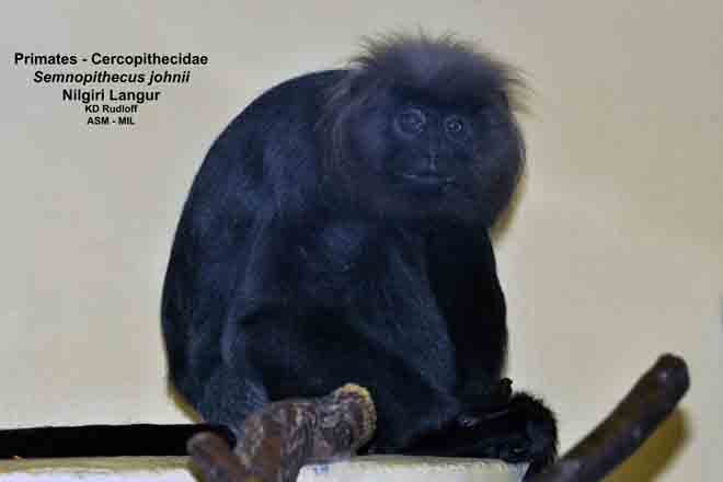 Formerly Trachypithecus johnii. Also as Black Leaf Monkey|Hooded Leaf Monkey|Indian Hooded Leaf Monkey|John's Langur|Nilgiri Black Langur|Nilgiri Leaf Monkey|South Indian Black Leaf Monkey.