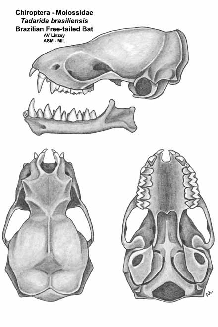 Skull & dentary. University of Alabama #772 Alabama, Crenshaw County, Luverne. Also as Mexican Free-tailed Bat.