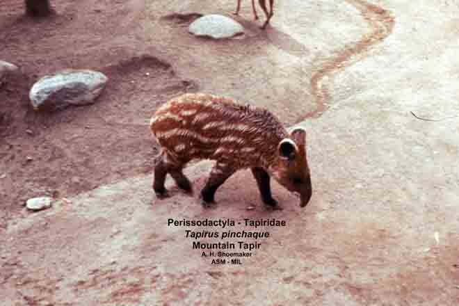Young in striped and spotted coat. Also as Andean Tapir|Woolly Tapir.