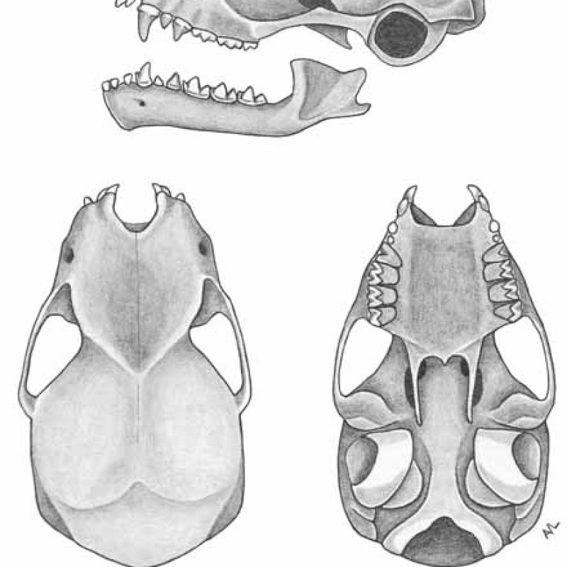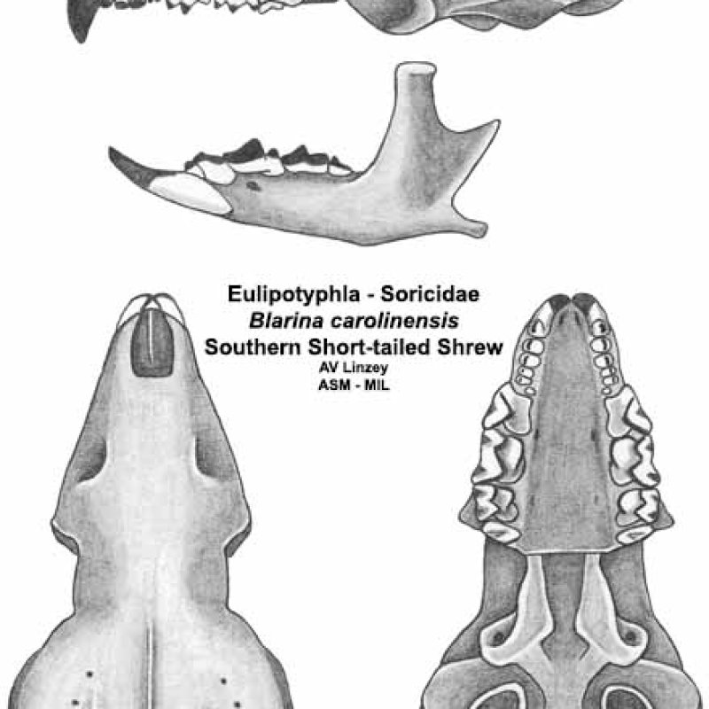 Skull & dentary. University of South Alabama #619 Alabama, Mobile County, Mobile. Formerly as Cryptotis parva. Formerly Soricomorpha.