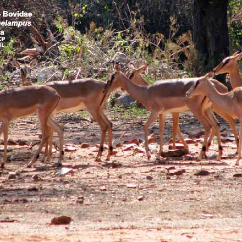 Small group of females. Aepyceros melampus petersi. Also as Aepyceros petersi, Black-faced Impala.