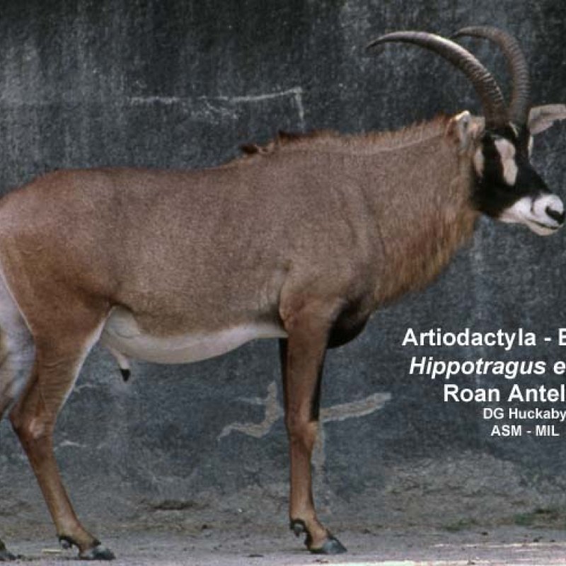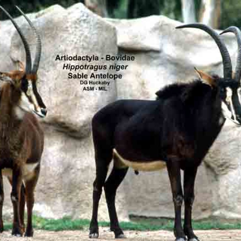 Side view of adult male, front view of adult female. Also as Southern Sable Antelope.