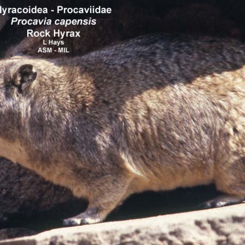 Front quartering view of adult. Also as Yellow-spotted Rock Hyrax.