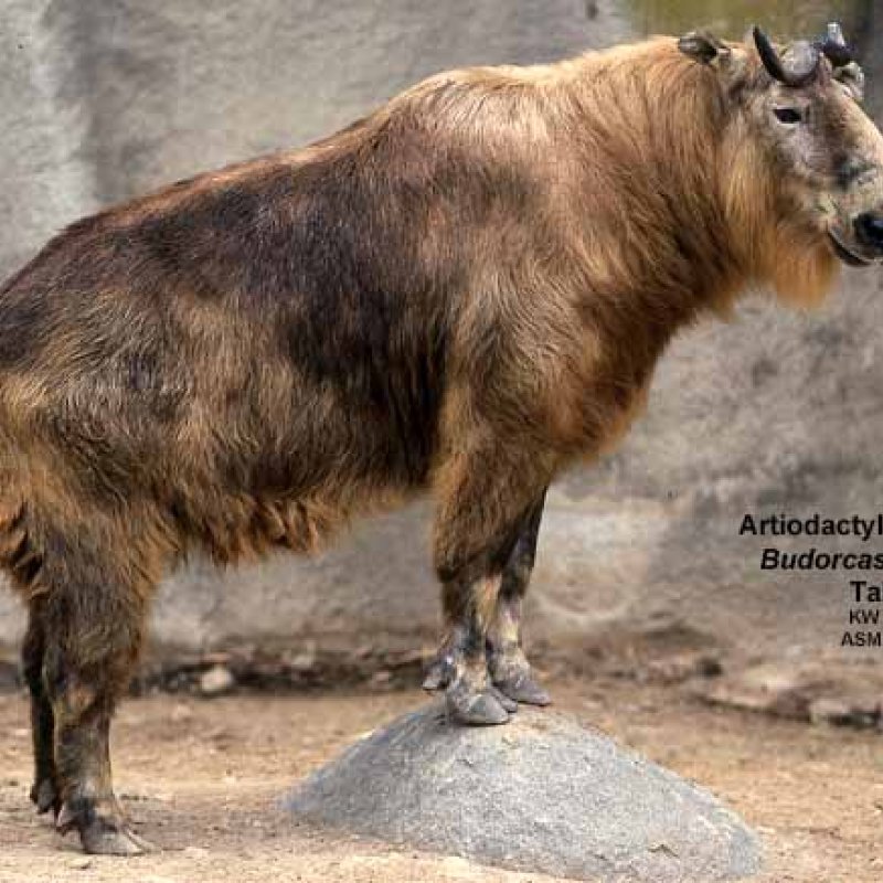 Side view of adult. Budorcas taxicolor taxicolor. Also as Mishmi Takin.