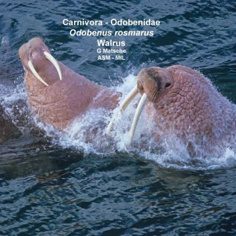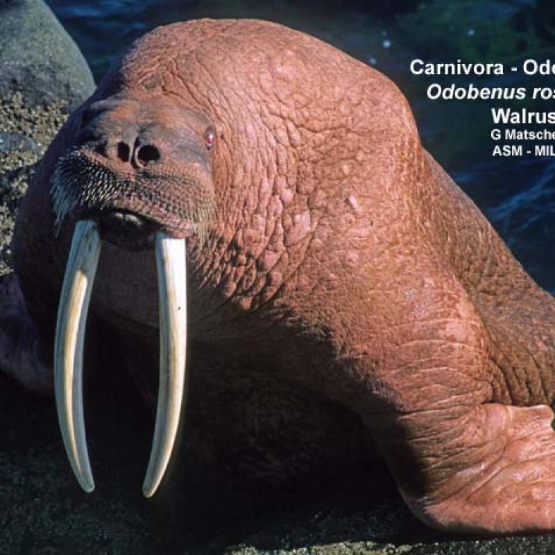 Adult male emerging from water. Odobenus rosmarus divergens.