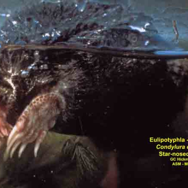 Side view, swimming in aquarium. Formerly Soricomorpha.