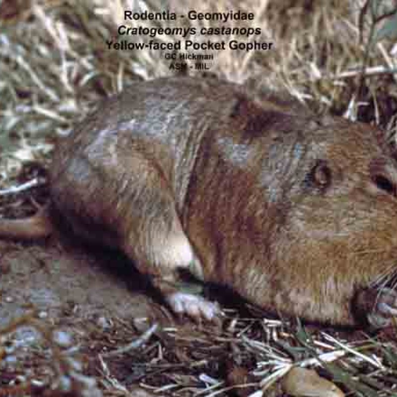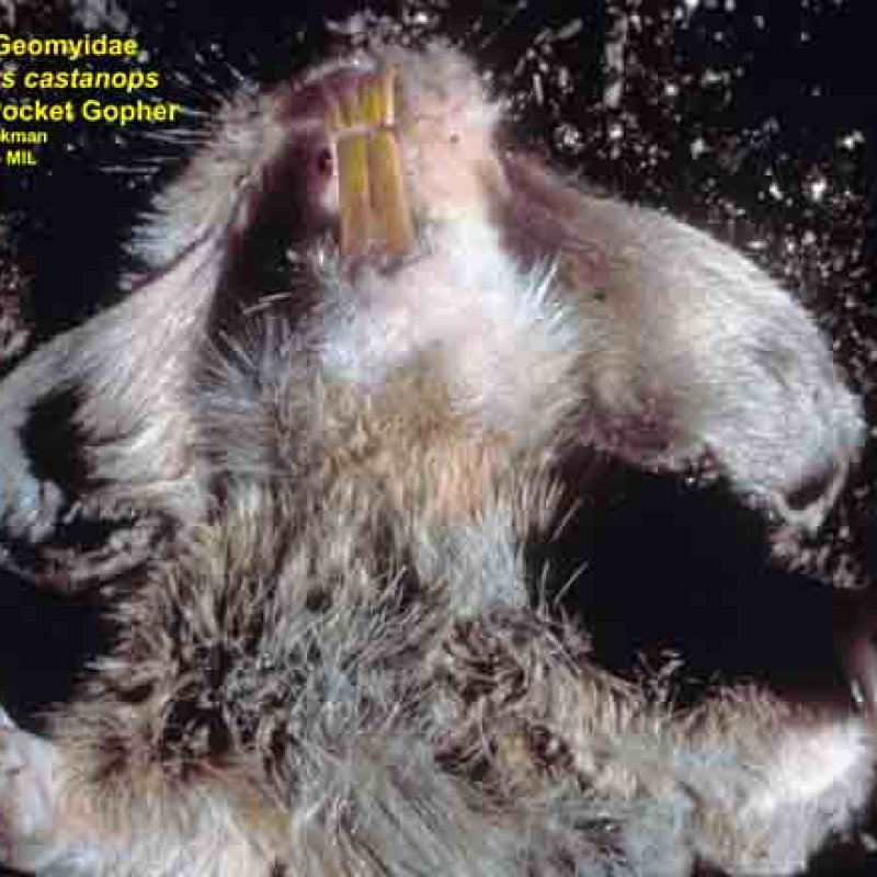 Ventral view, showing front feet, everted cheek-pouches, and incisors
