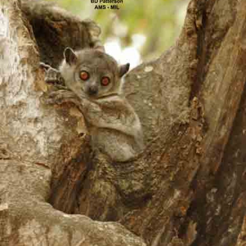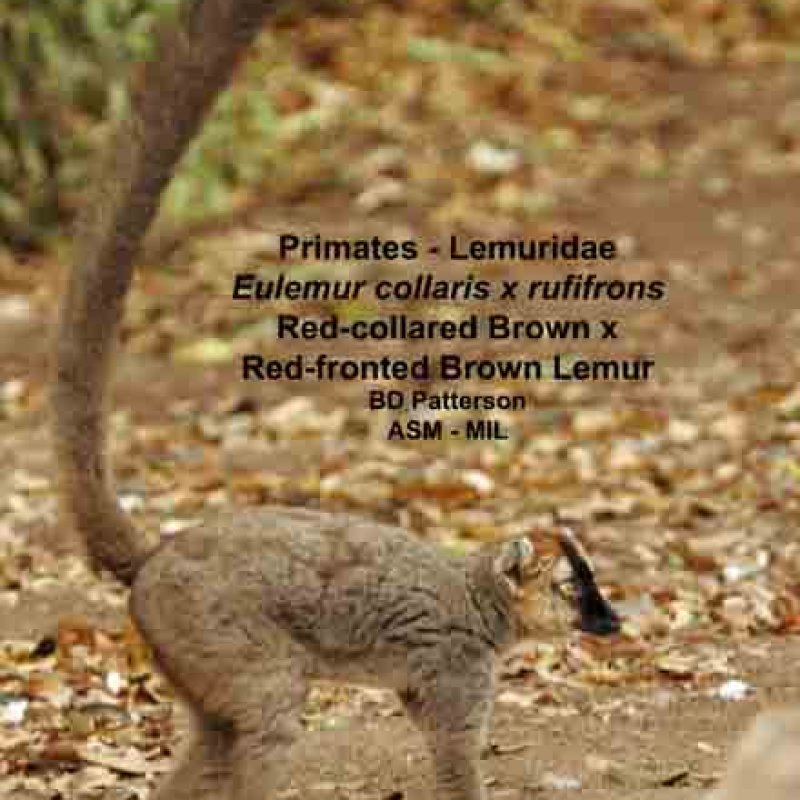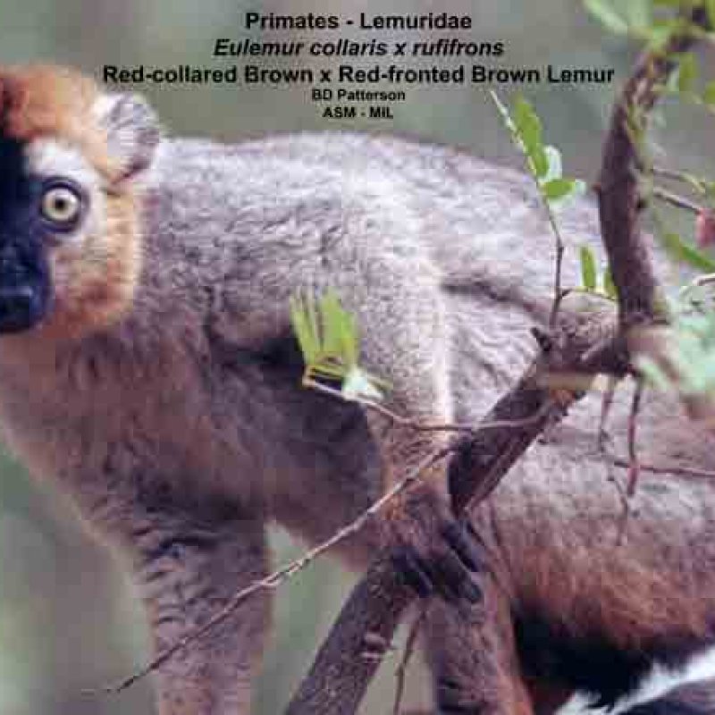 Adult in tree cavity, face and front feet visible. Also as White-footed Weasel Lemur.