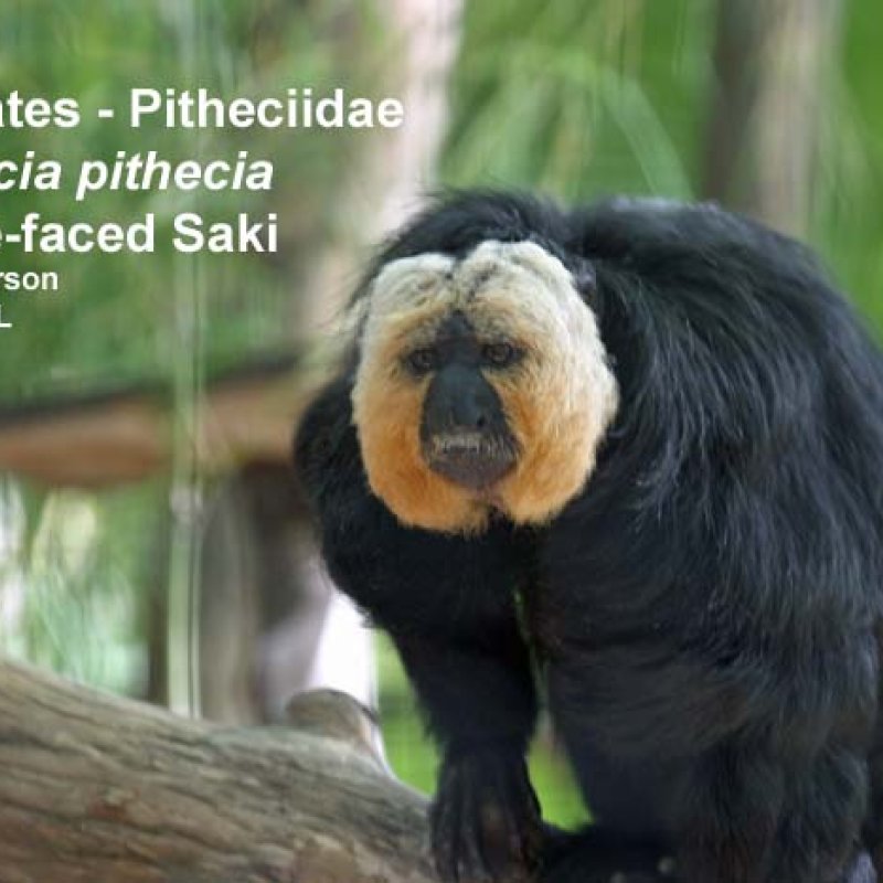 Front view of adult male. May be hybrid. Identified by Laura K. Marsh. Also as Guianan Saki|Pale-headed Saki|Guiana White-faced Saki.