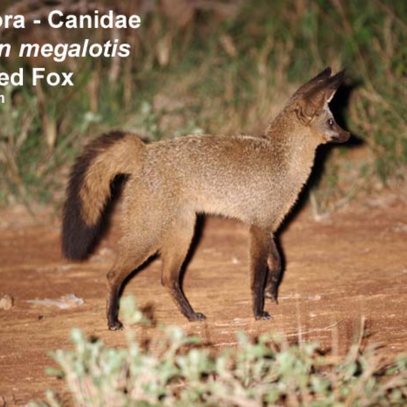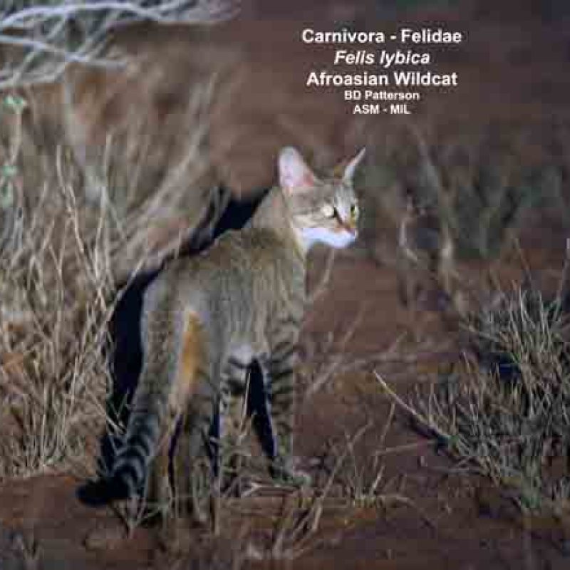 Quartering rear view of adult facing camera at night. Formerly as Felis silvestris libyca. Now as Felis lybica lybica.