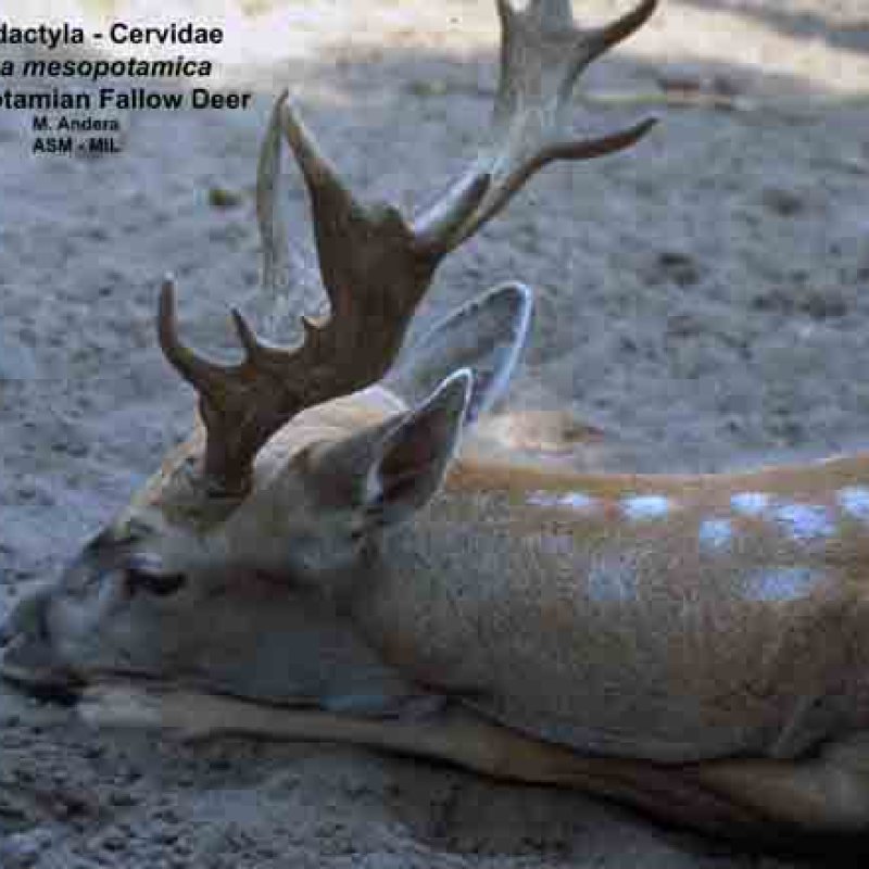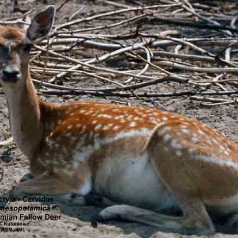 Oblique view of adult female, lying on ground. Formerly Dama dama mesopotamica. Also as Persian Fallow Deer.