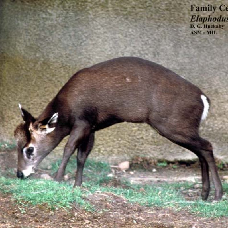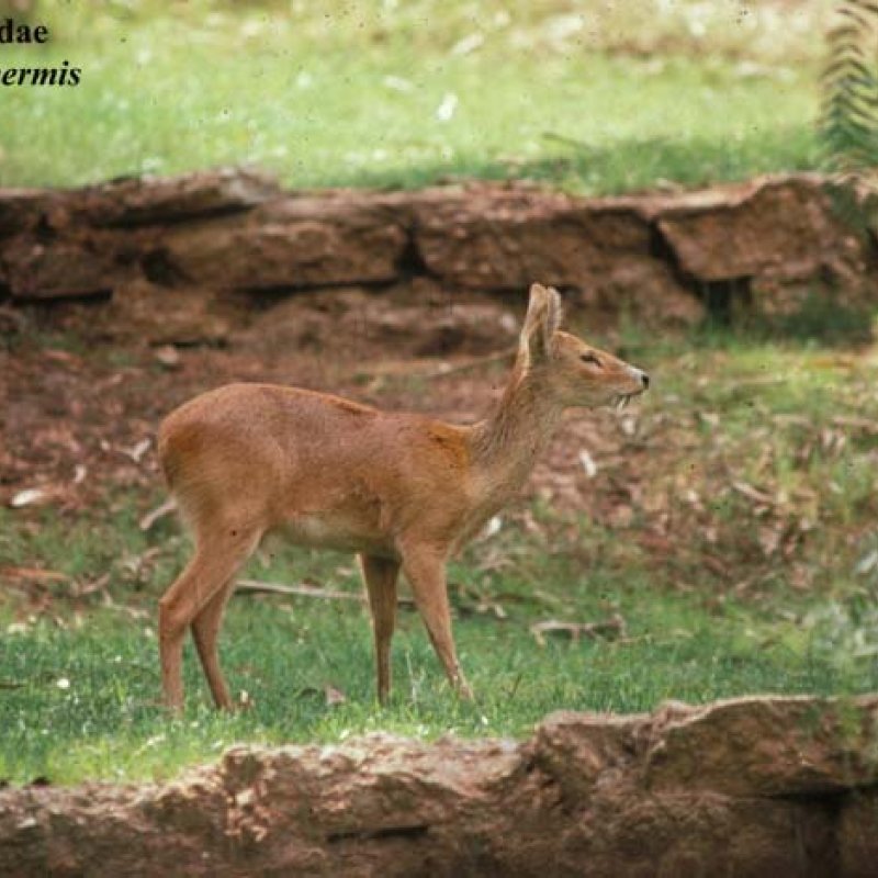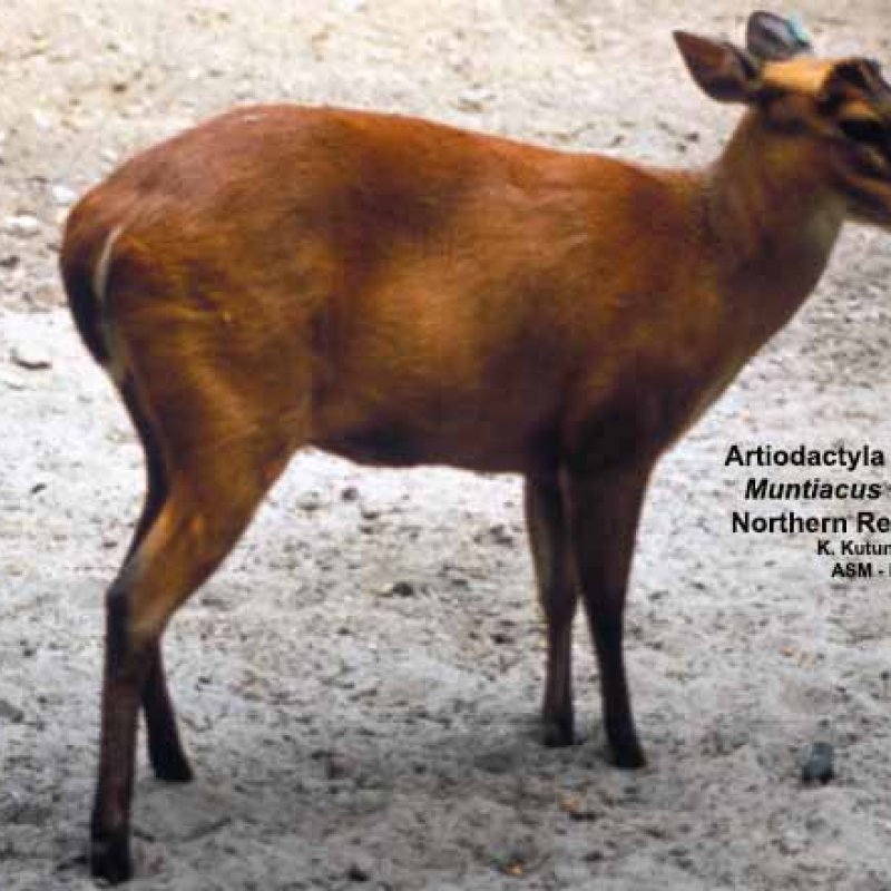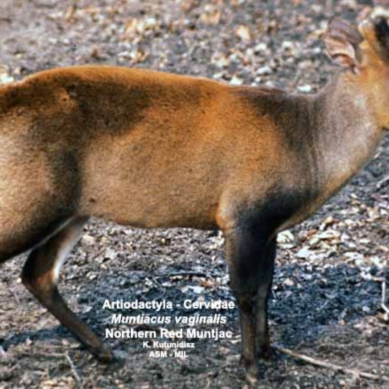 Side view of adult female, standing. Formerly as Muntiacus muntjak vaginalis.