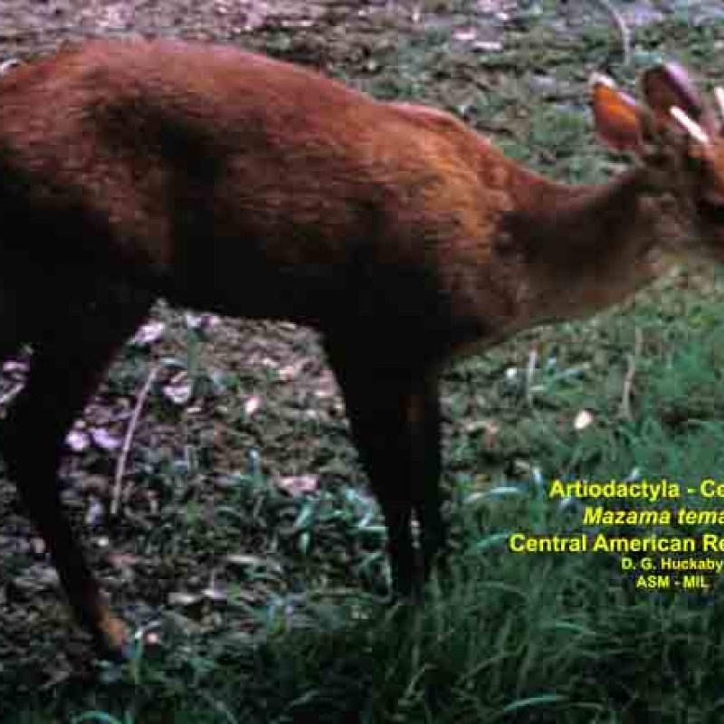 Dorsolateral view of adult male. Formerly Mazama americana temama. Also as Mexican Red Brocket.