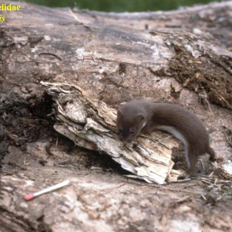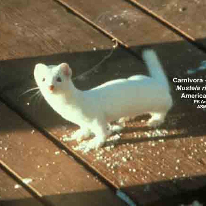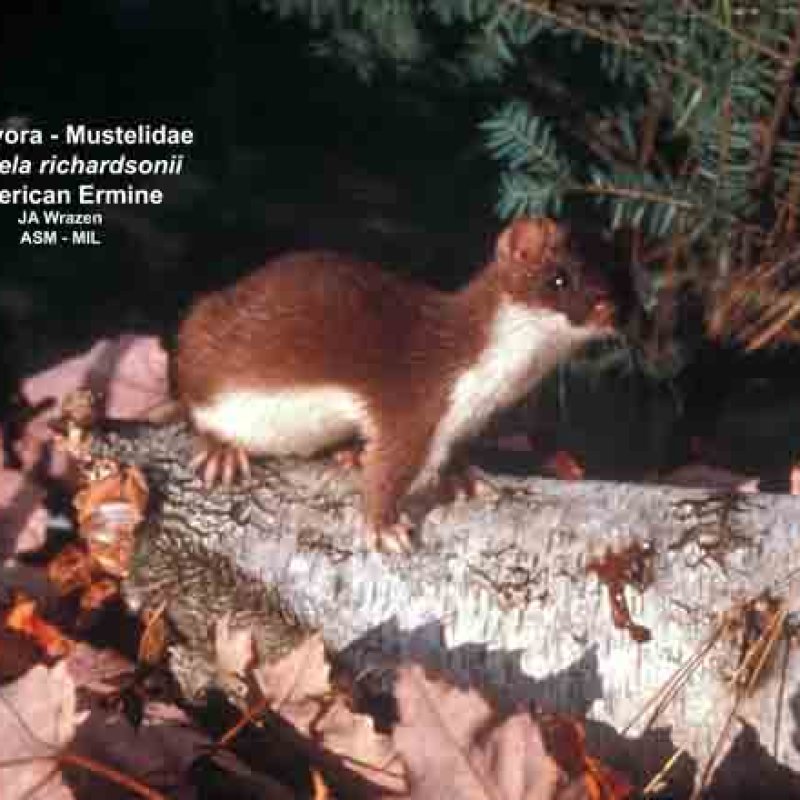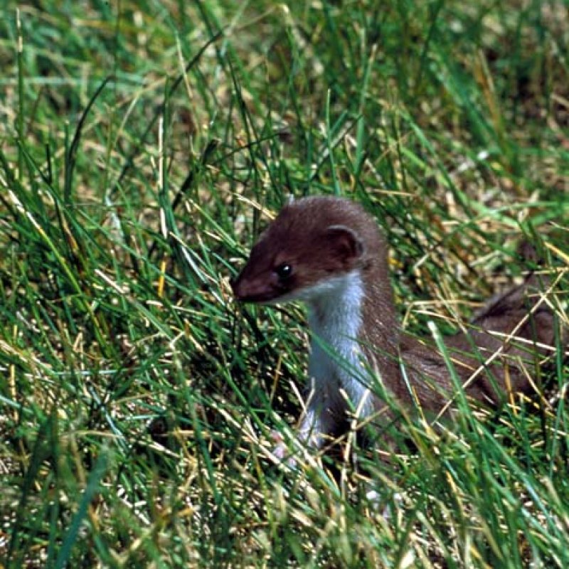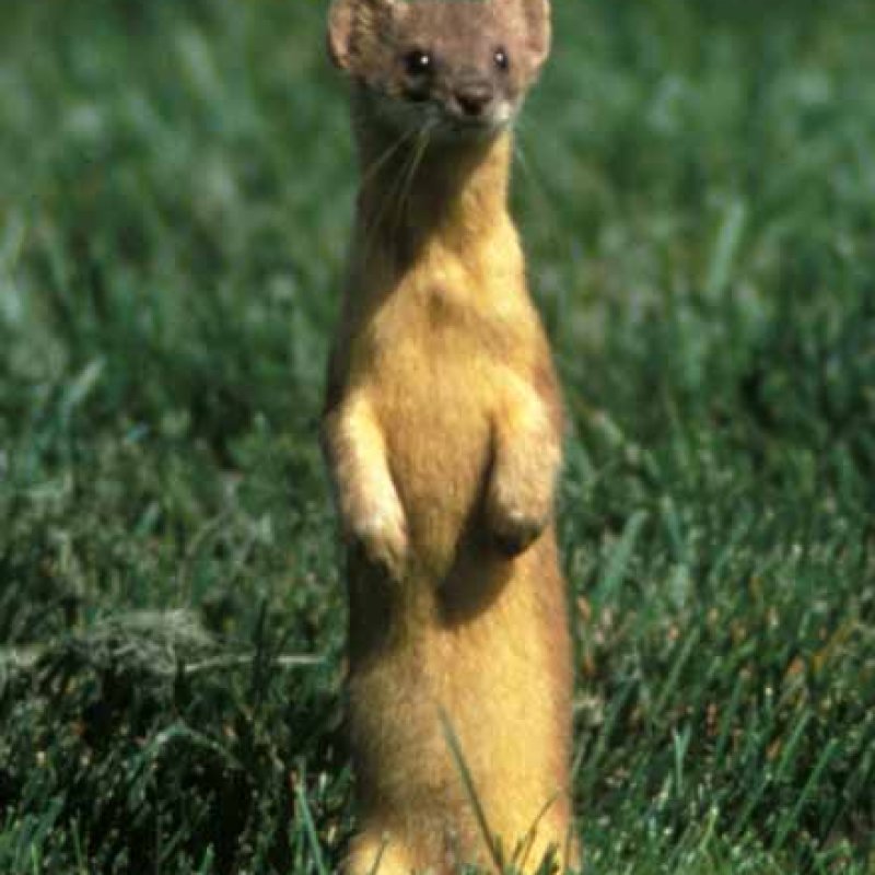 Oblique view of weasel in summer coat, tail not shown. Formerly Mustela erminea.